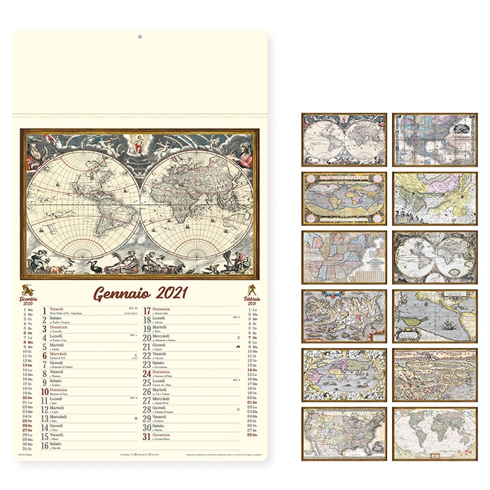 Calendario antiche mappe in carta avorio 70 gr., testata rinforzata, festivita internazionali