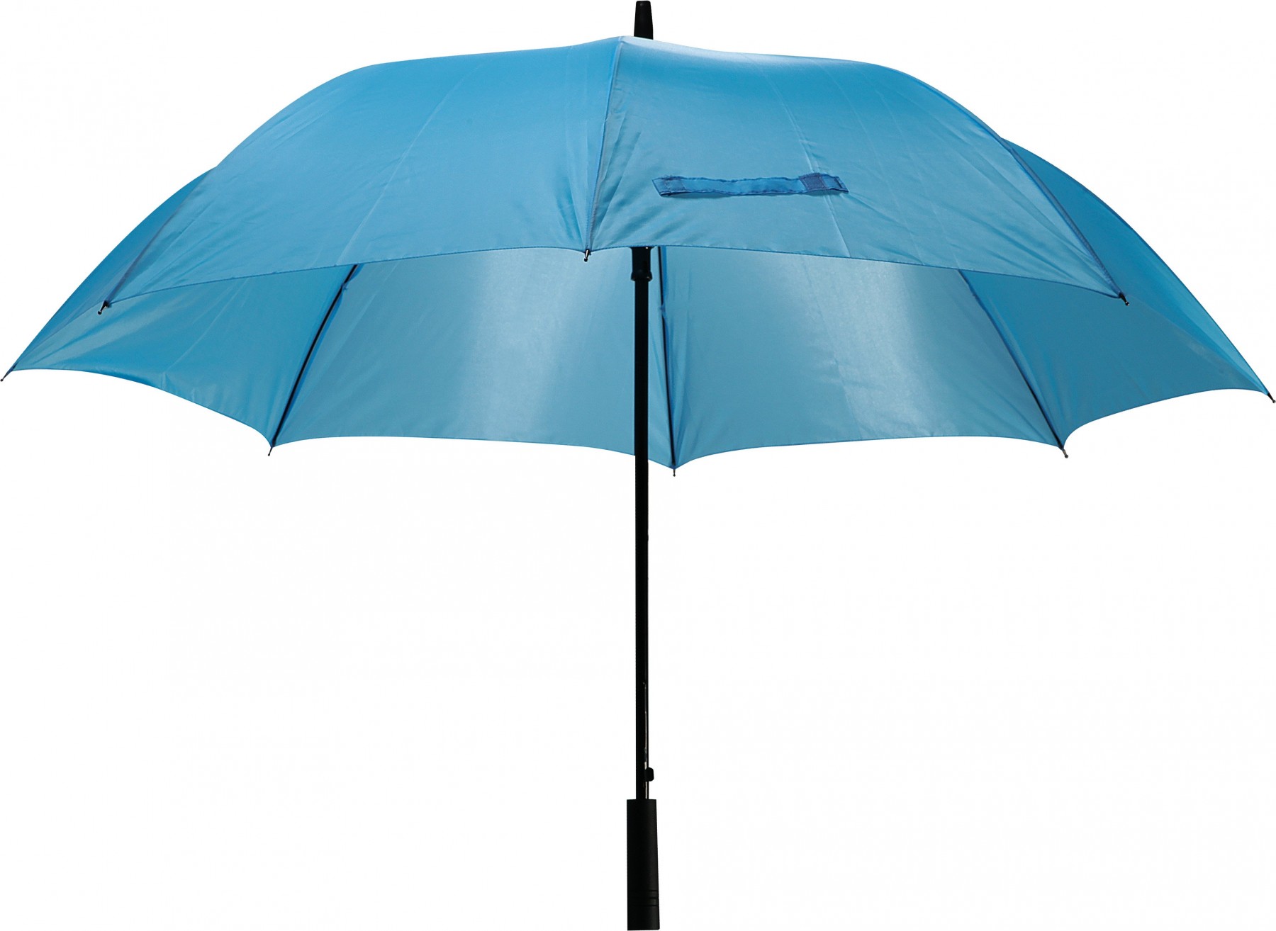 Ombrello automatico tessuto pongee 190T con manico dritto nero in legno, asta in metallo, raggi in fibra di vetro, puntale in plastica, apertura automatica.