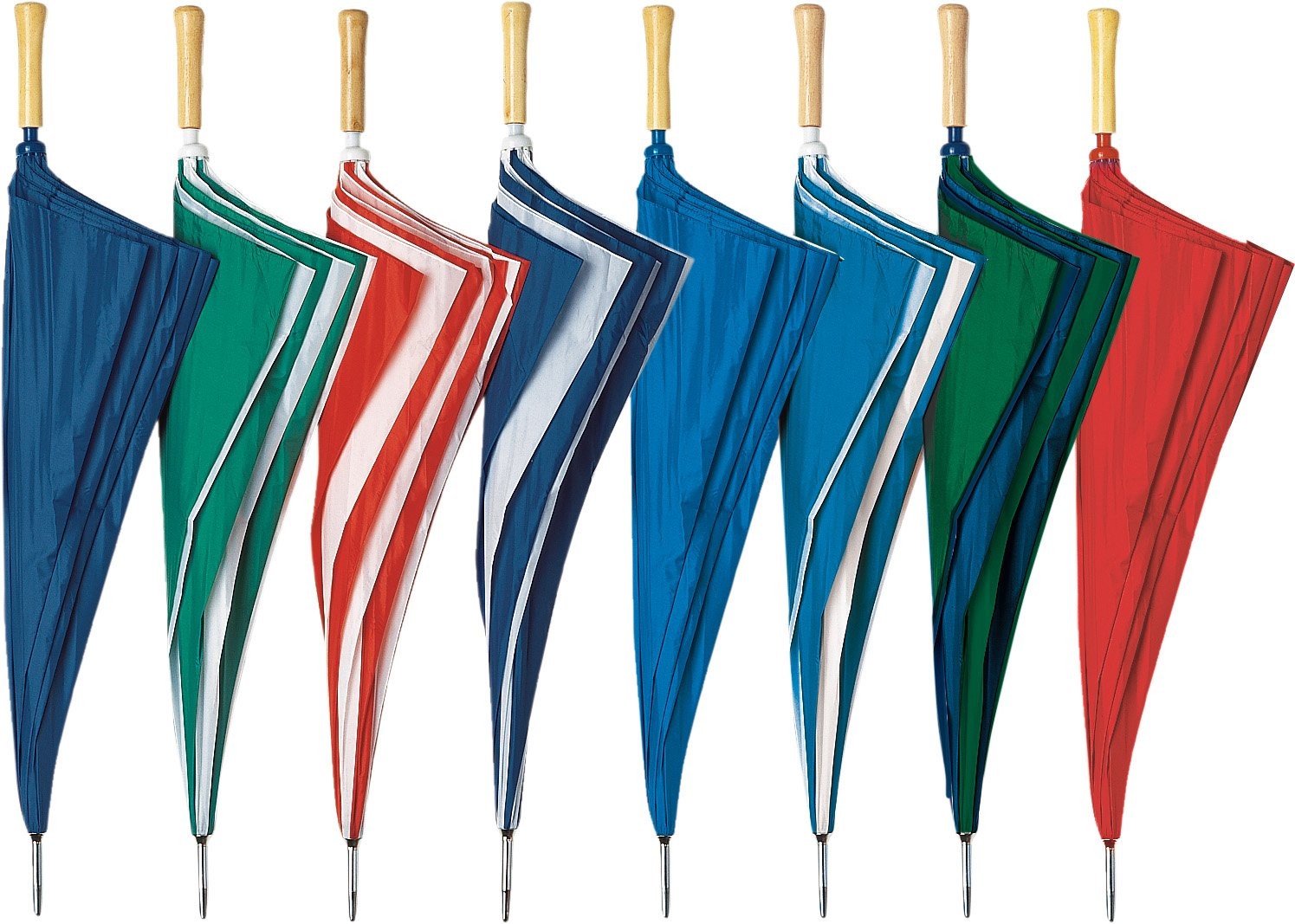 Ombrello Golf maxi con manico dritto in legno, puntale e asta in metallo.