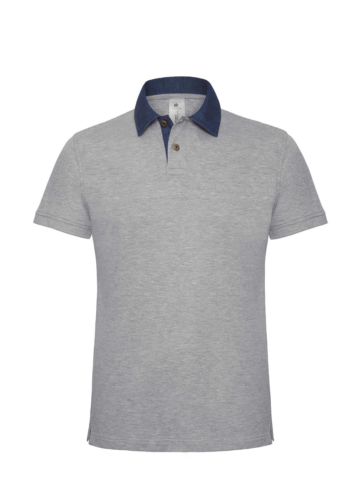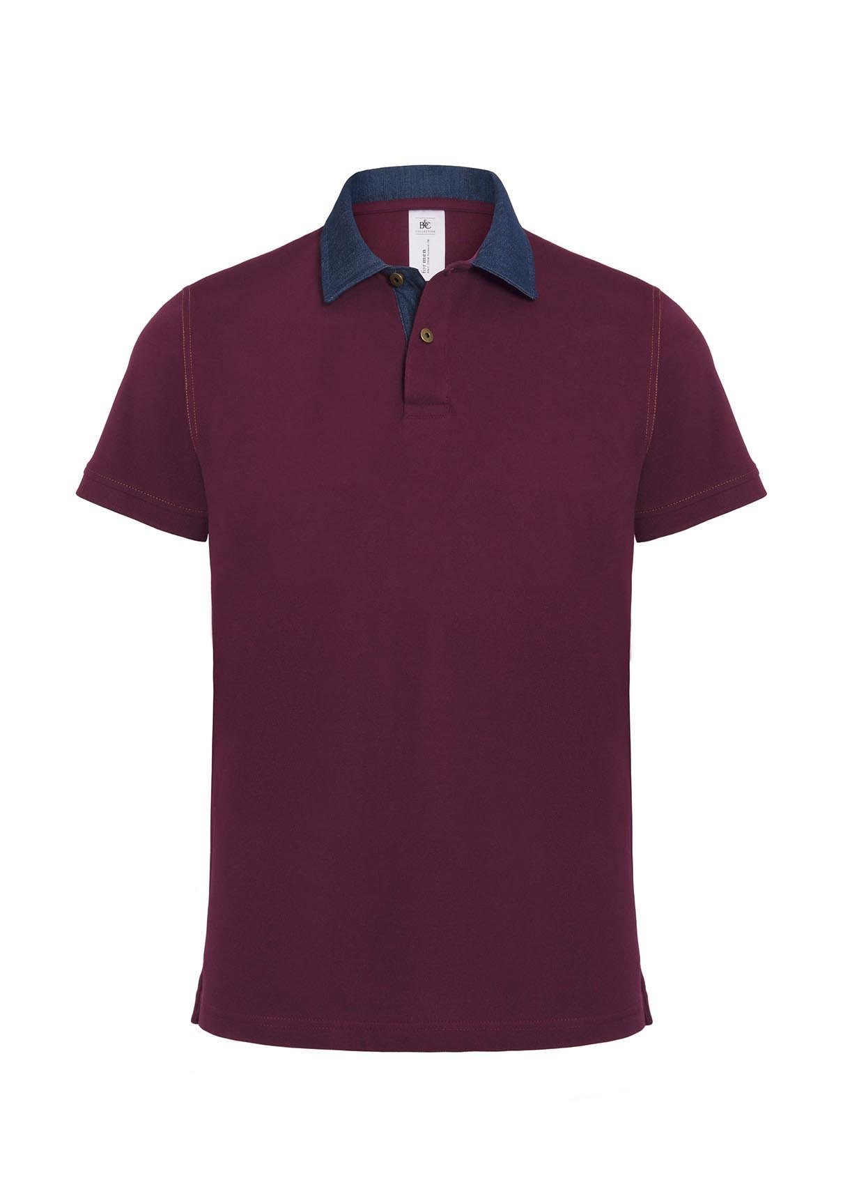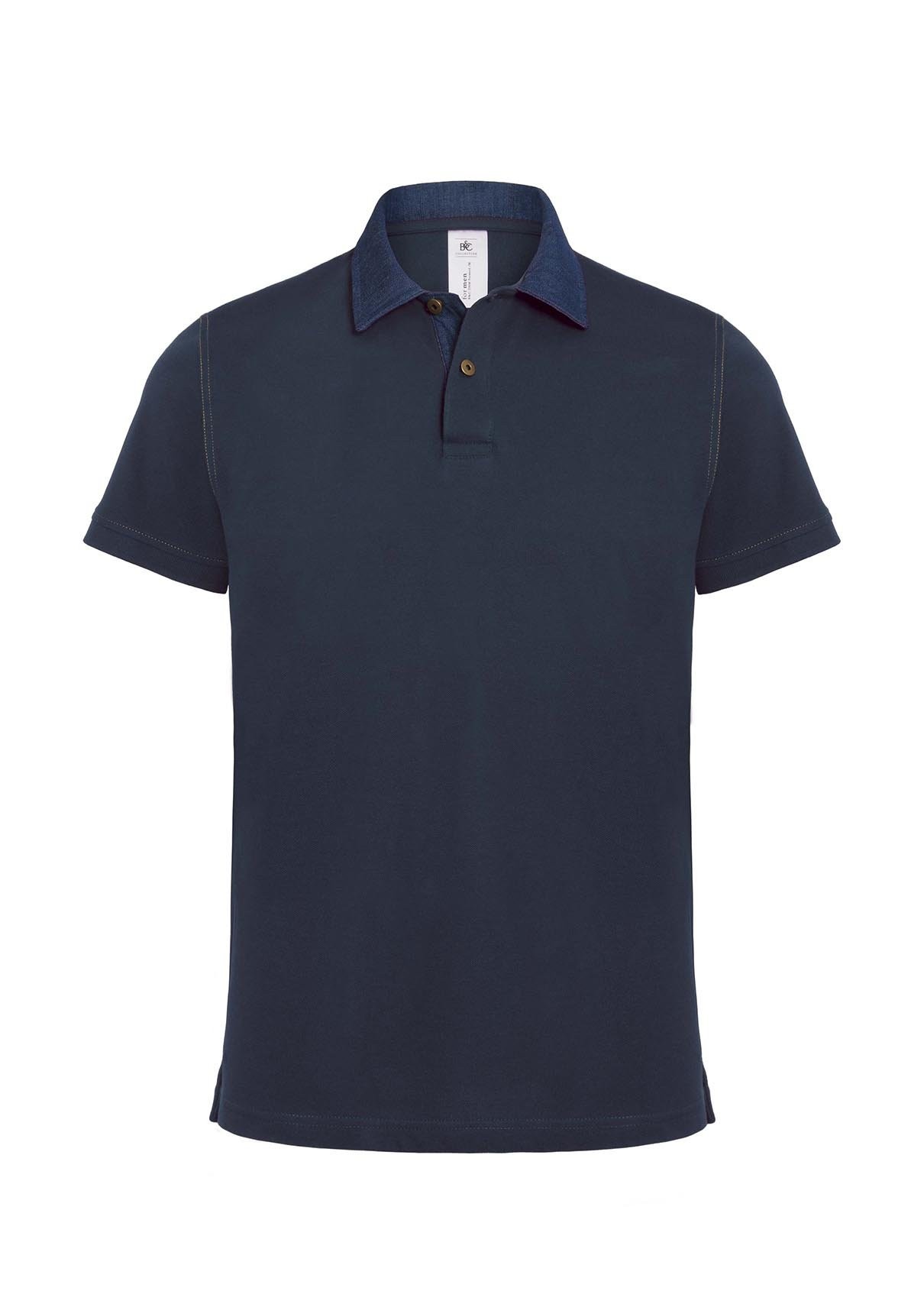 Polo Piquè Forward Men B&C CPMD30 M/C 100% Cotone 180 gr/m2 con 2 bottoni in ottone anticato colletto in denim, spacchetto laterale con fettuccia in Denim